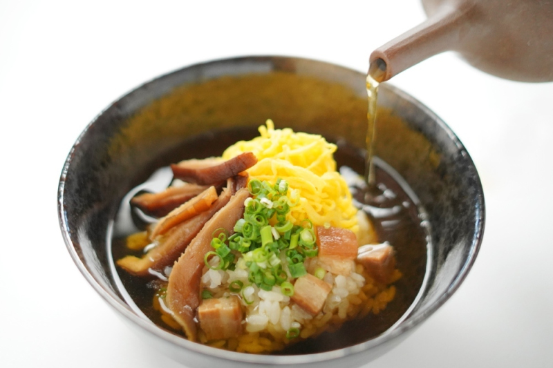 ラフテー入り混ぜご飯(豚飯)をお茶漬けでご用意。